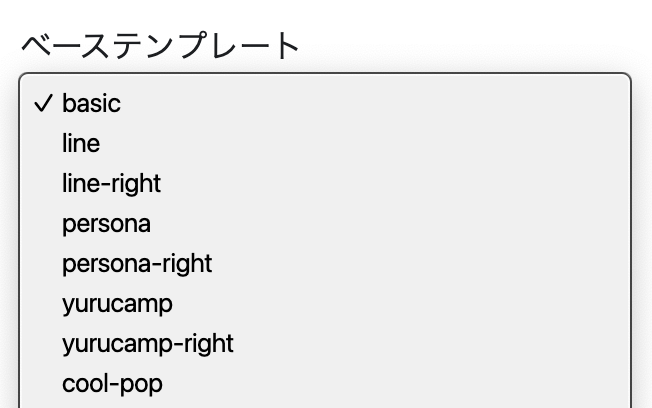 好みに近いテンプレートを選んだらその下の設定を変更するなどして見た目を変更していきます
