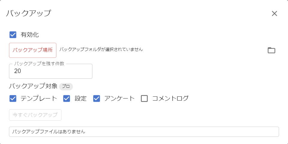 バックアップを残す件数バックアップファイルが増え過ぎないようにファイルを残す件数を指定できます