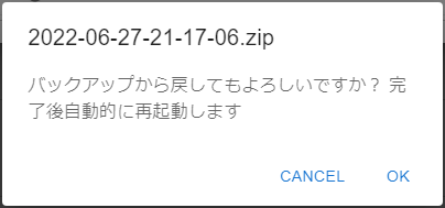 クリックすることで対象のバックアップファイルから復元を開始します