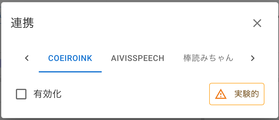 連携するためにはCOEIROINKアプリが起動している必要があります