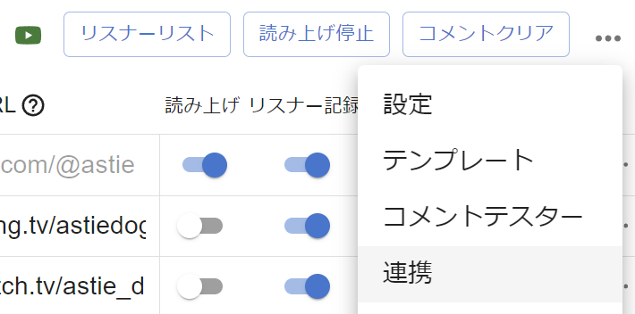 連携が有効な場合、枠ごとに読み上げボイスや設定を上書きすることができます